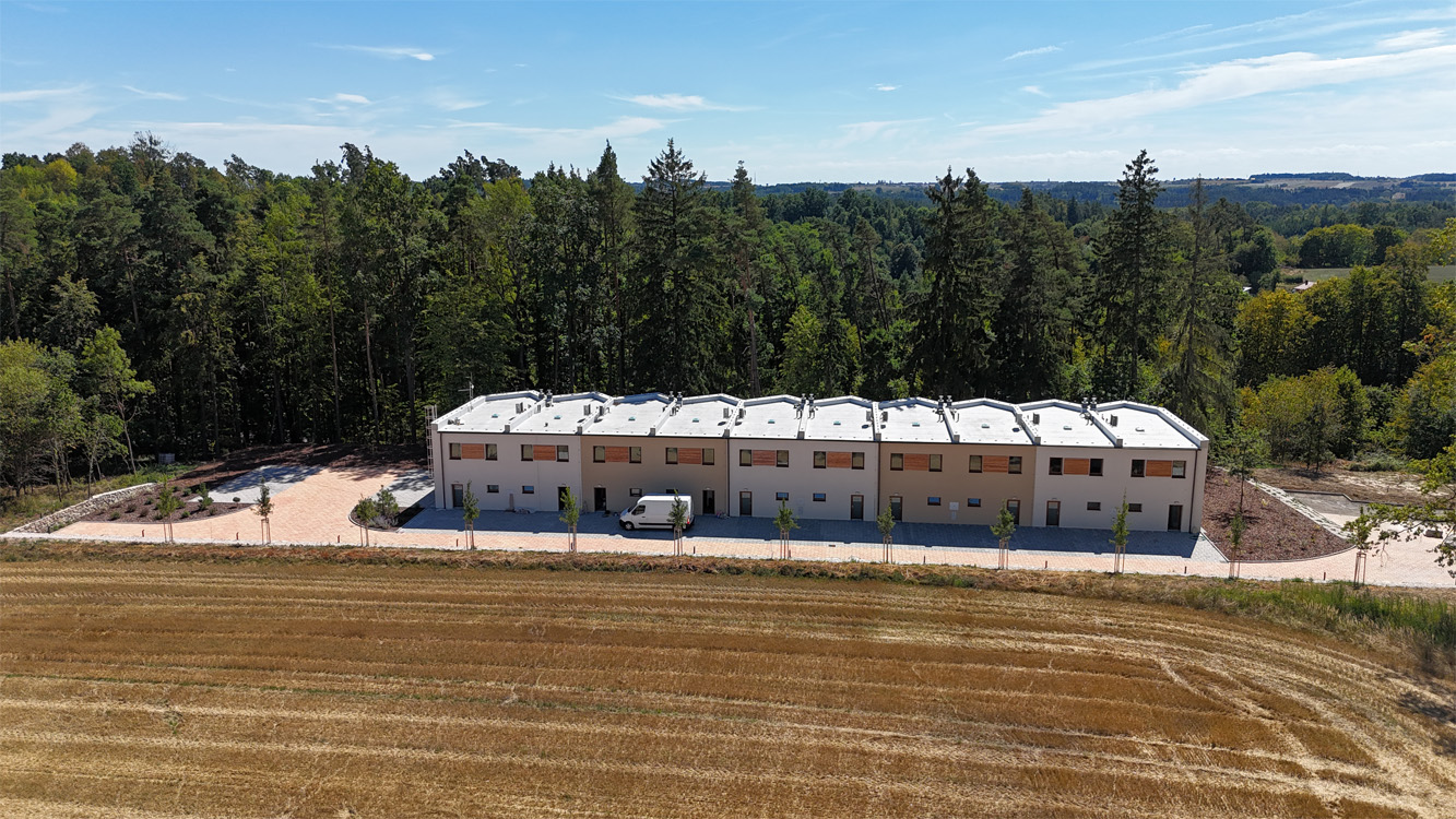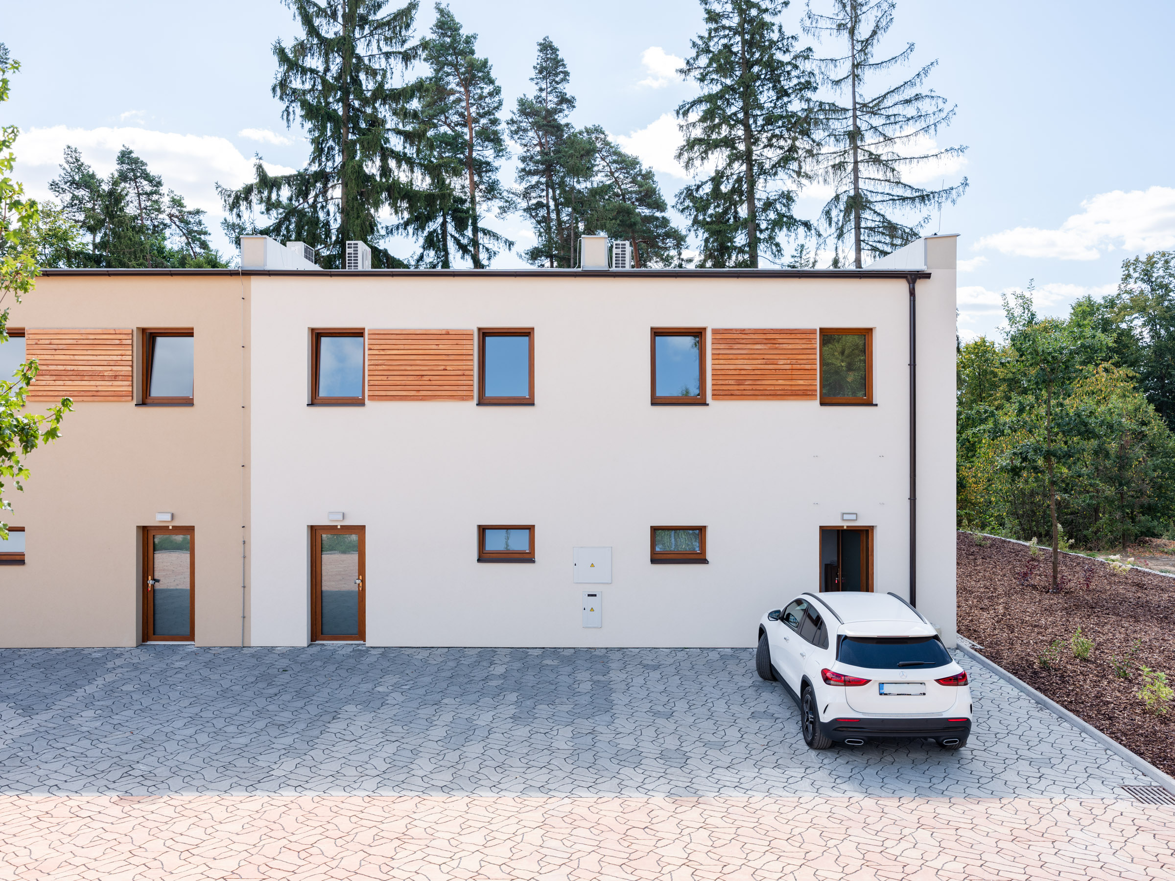 Domy jsou zasazeny do malebné krajiny obklopené zelení a lesy, a přitom zůstávají jen pár minut od centra Tábora. Už teď se jedná o klidnou lokalitu, kde vás nebude rušit ruch velkoměsta – a do roku 2030 zde navíc vznikne obchvat, díky kterému bude doprava odkloněna a oblast získá ještě více ticha a soukromí.