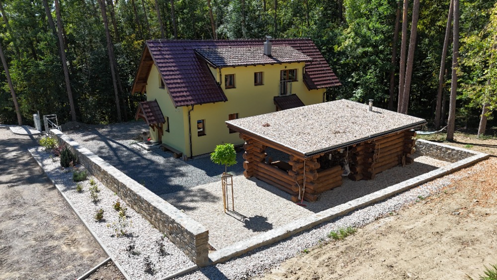 ✅K relaxaci na pozemku přispívá samostatná sauna ve srubu vytápěná na dřevo